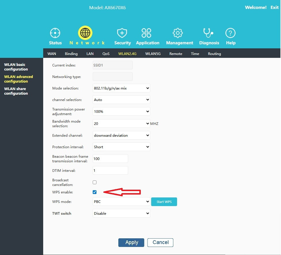 3. Выбираем сверху вкладку “WLAN2.4G”: