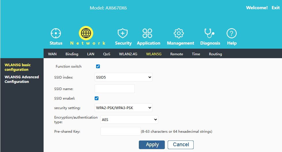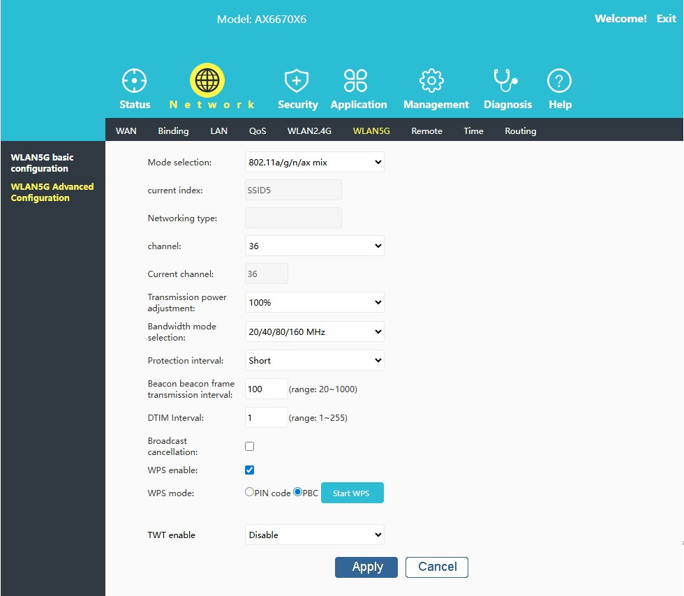 Слева выбираем раздел "WLAN5G Advanced Configuration"