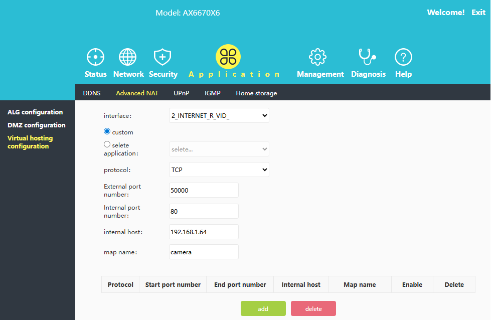 в поле “Internal port number” вписываем внутренний порт локального устройства