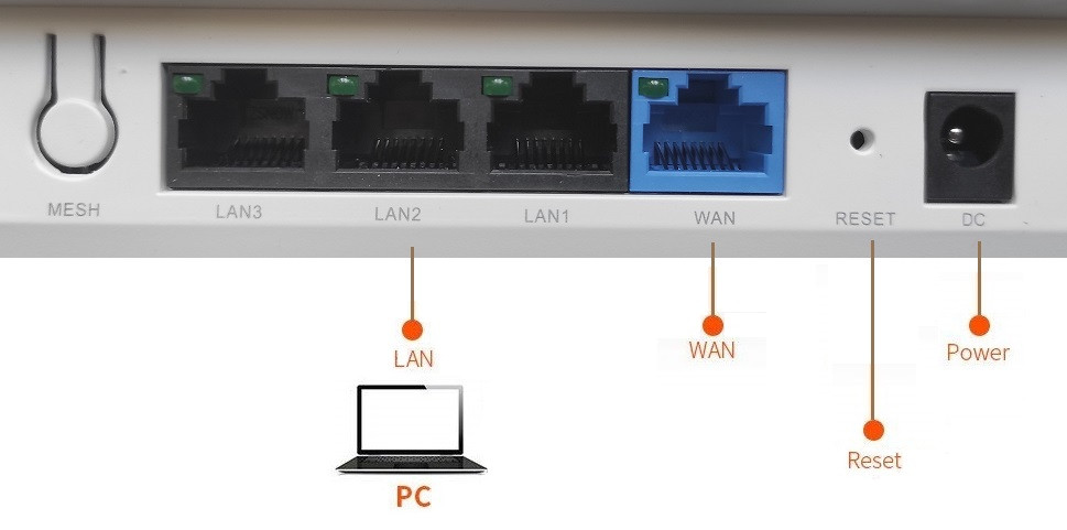 2. Соедините Ethernet кабелем Ethernet-порт компьютера с в LAN-портом роутера