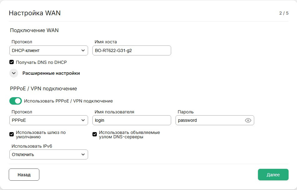 Настройка PPPOE
