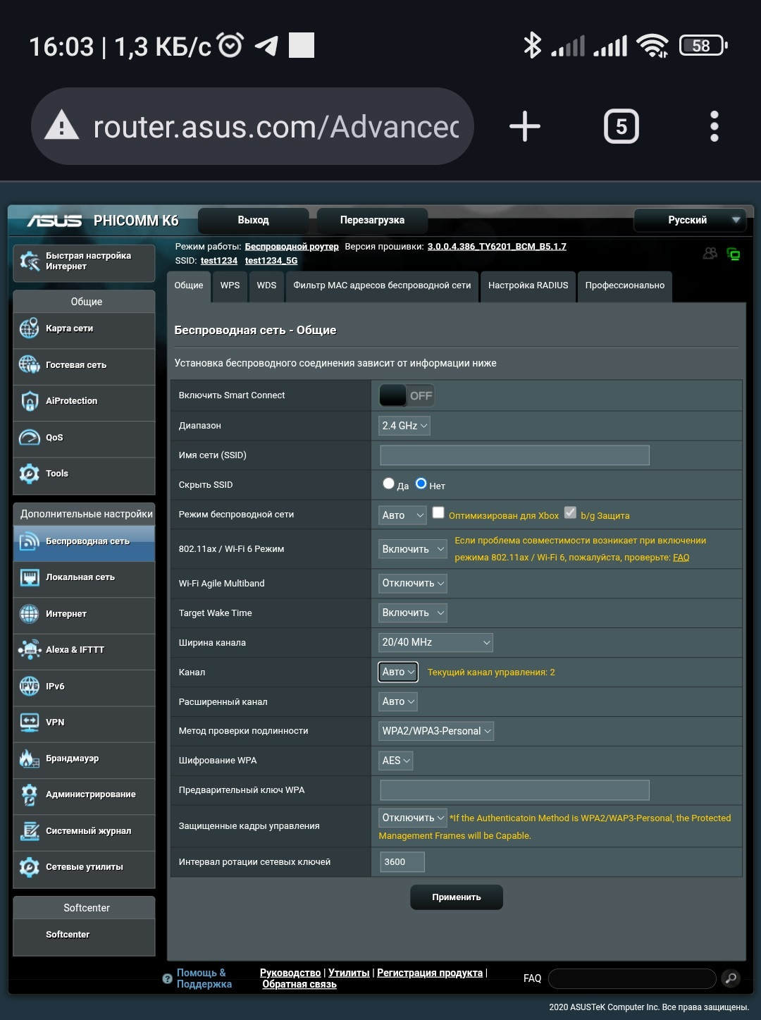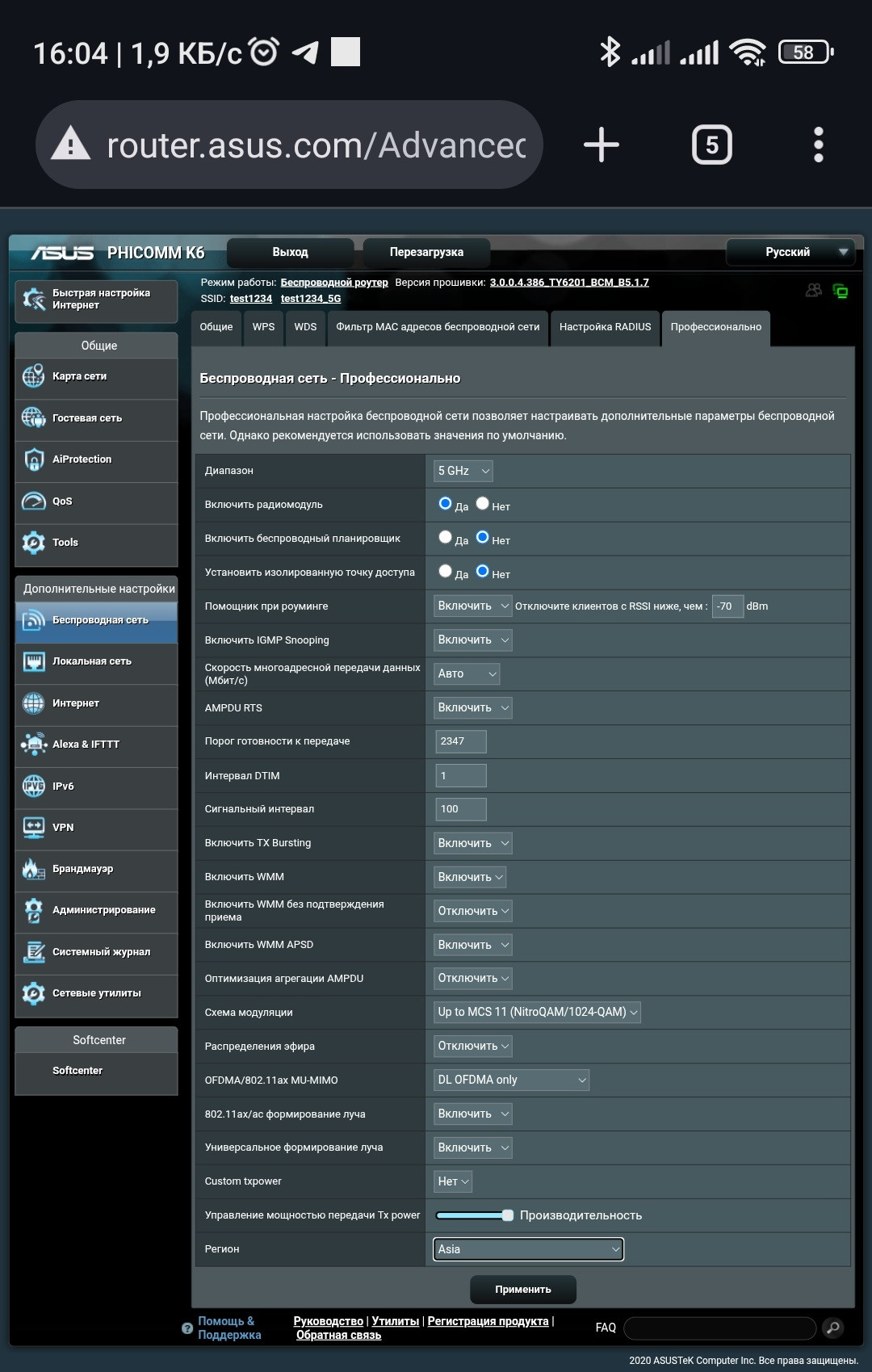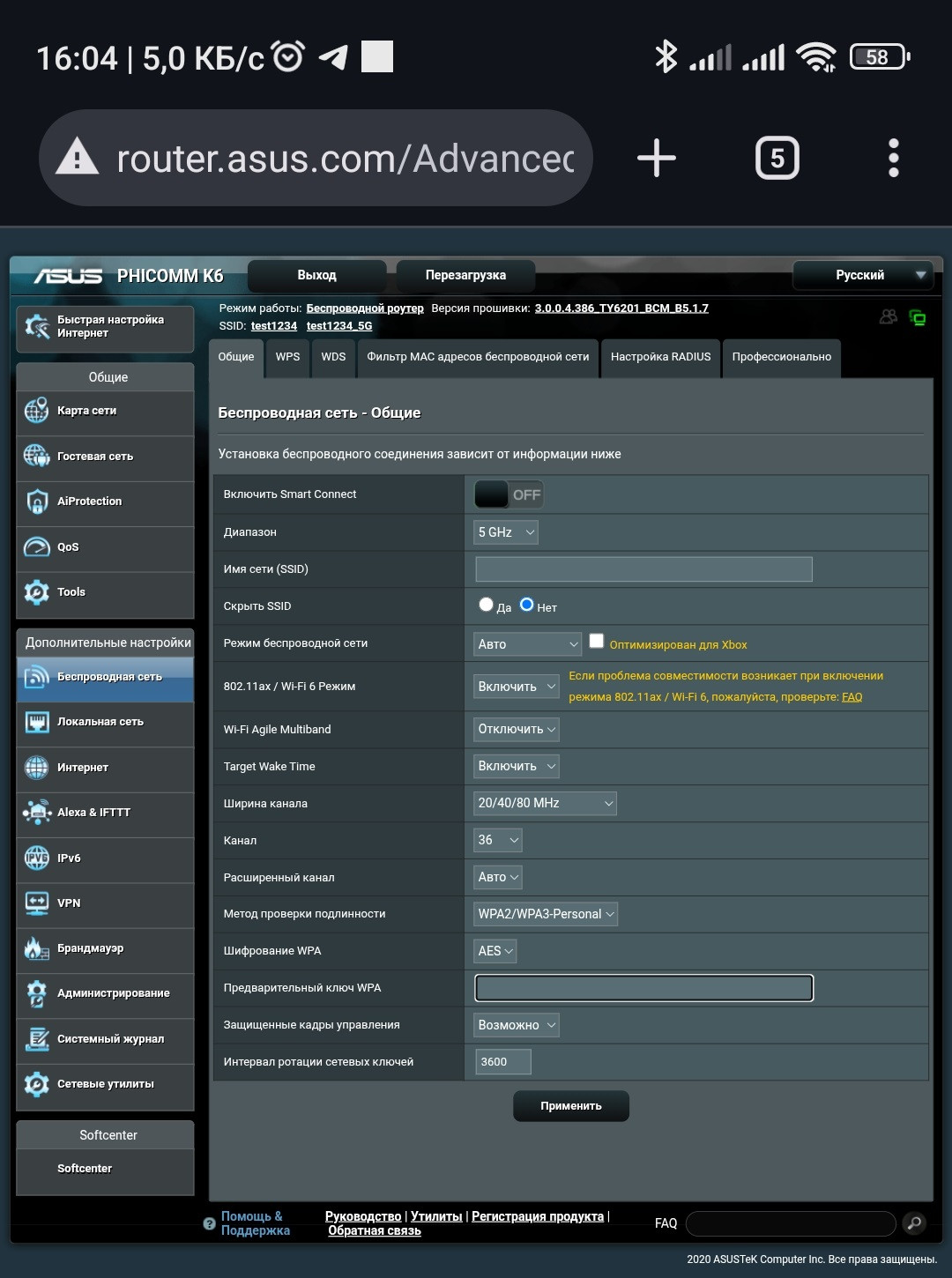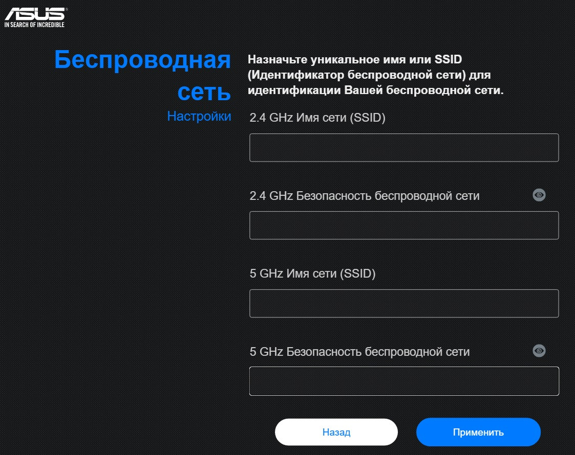 Для настройки сети 5 GHz: