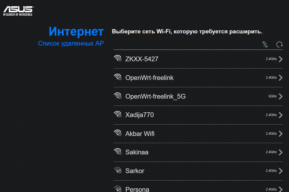 В появившемся списке выбираем материнскую беспроводную сеть к которой мы хотим подключиться в качестве репитера