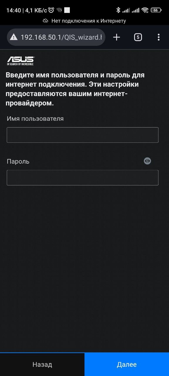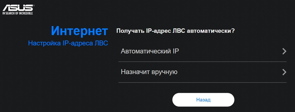 После чего нужно подключить кабель Ethernet к WAN-порту роутера и дождаться автоопределения типа подключения