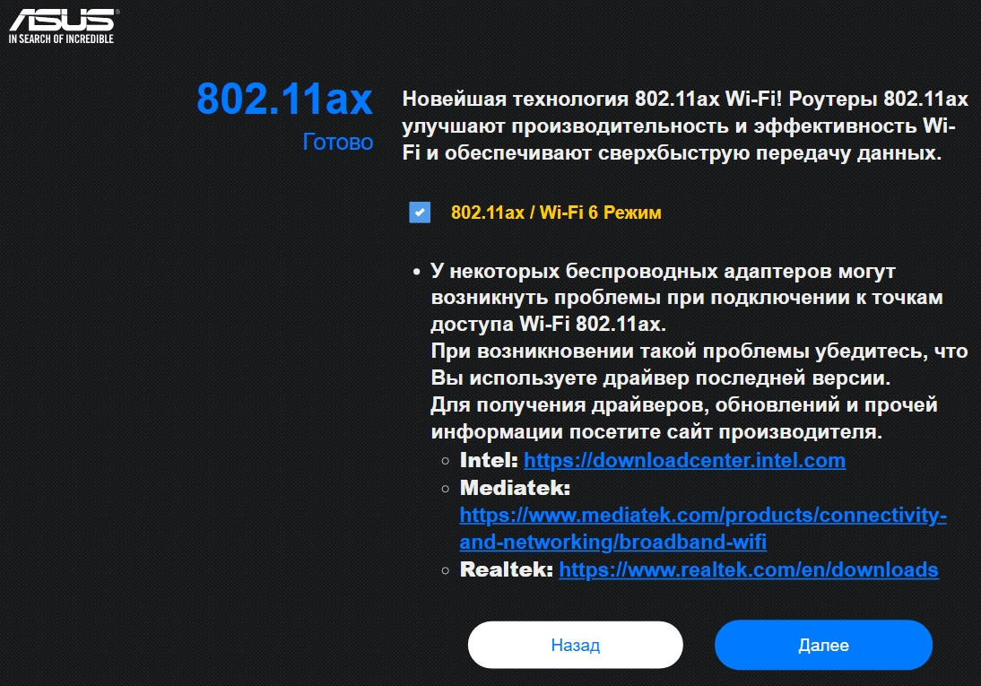 Далее на странице "Настройка WiFi"