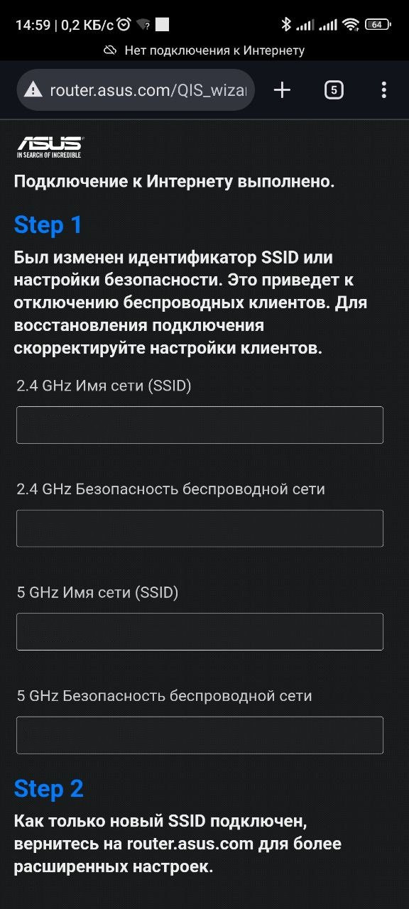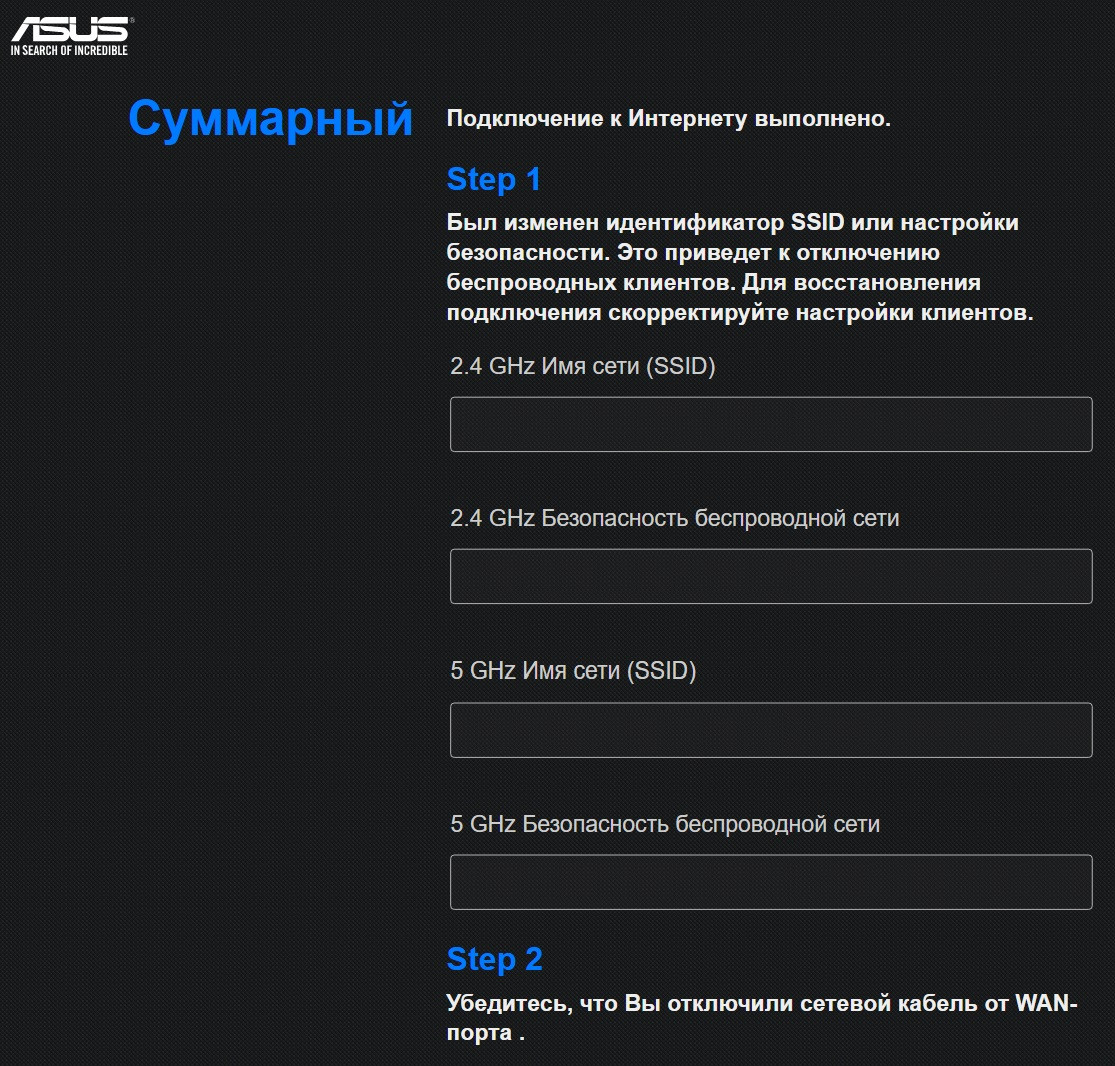 На странице "Подключение к интернету выполнено" перепроверяем правильность введенных данных и переподключаемся к новой Wi-Fi сети созданной нами