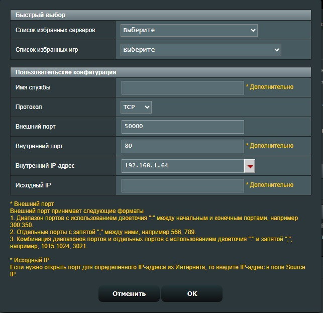в поле “Внешний порт” вписываем внешний порт локального устройства