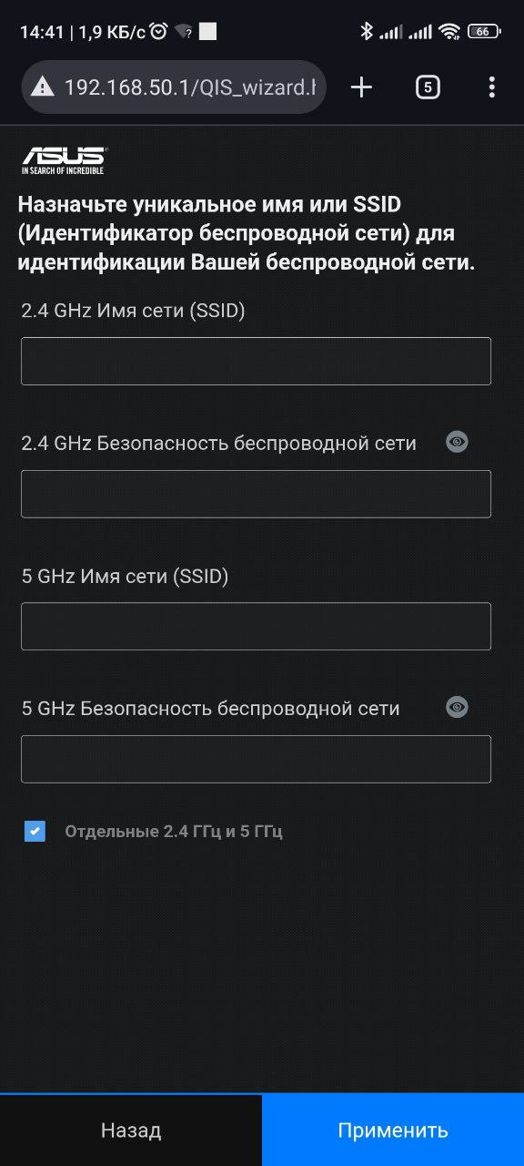выставляем галочку "Отдельные 2.4 ГГц и 5 ГГц"