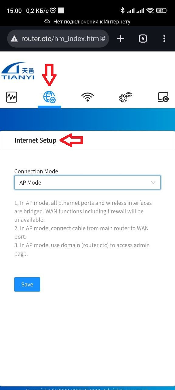 В поле "Connection Mode" выбираем "Router Mode"